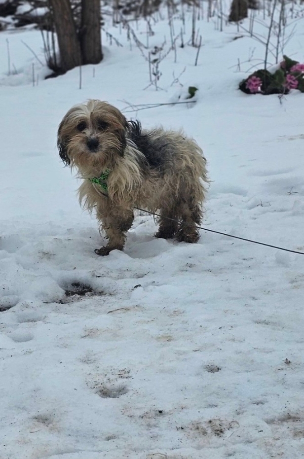 Kurzinfo: Das Fell ist total verfilzt und wird vor der Ausreise ganz abgeschoren werden müssen.