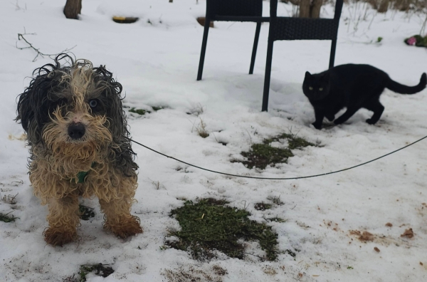 Kurzinfo: Das Fell ist total verfilzt und wird vor der Ausreise ganz abgeschoren werden müssen.
