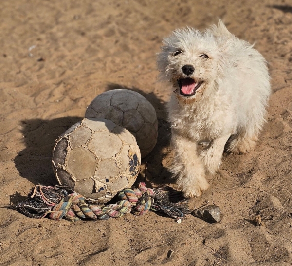 Sie spielt gerne mit ihrem Bruder und auch andere Hunde werden aufgefordert zum Mitmachen.