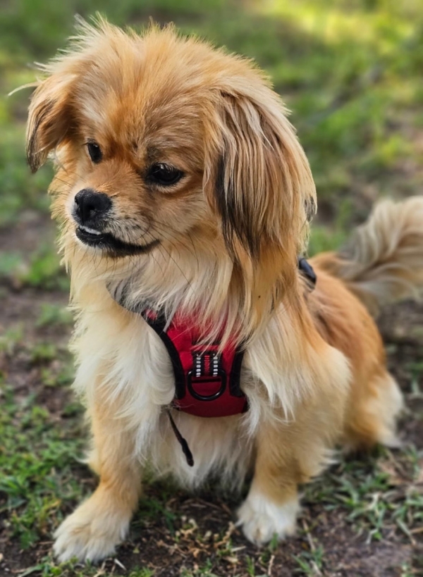 Rubino, Rüde, Tibet Spaniel Mischling, geboren ca. 20. April 2024 (von einem ungarischen Tierarzt geschätzt), reist kastriert, Schulterhöhe: ca. 33 cm und ca. z.Z. 5,5-6,5 Kilo (Hals: 23-26 cm, Brust: 41-45 cm), Vermittlung zu Katzen: ja, wenn diese das Leben mit Hunden kennen. Auf Wunsch wird auch extra nochmals getestet, nur eine Garantie gibt es nicht.