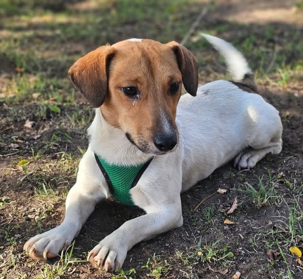 Jure, Rüde, Jack Russell Terrier Mischling, geboren ca. 01. August 2023 (von einem ungarischen Tierarzt geschätzt), reist kastriert, Schulterhöhe: ca. 29 cm und ca. z.Z. 6-7 Kilo (Hals: 29-32 cm, Brust: 44-48 cm), Vermittlung zu Katzen: ja, wenn diese das Leben mit Hunden kennen. Auf Wunsch wird auch extra nochmals getestet, nur eine Garantie gibt es nicht.