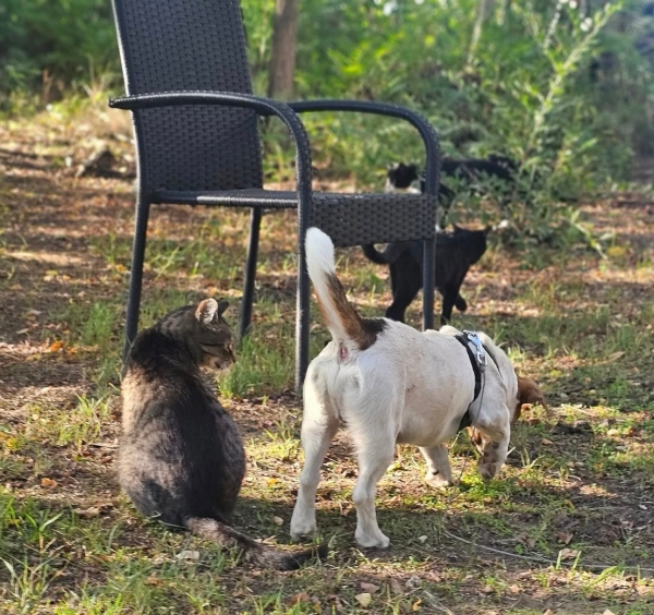 Katzen, die Erfahrung mit quirligen Hunden haben, sind für ihn auch kein Problem.
