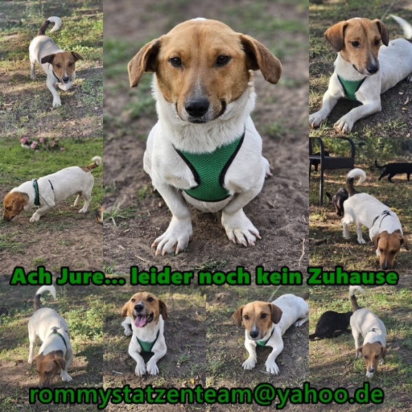 Jure, Rüde, Jack Russell Terrier Mischling, geboren ca. 01. August 2023 (von einem ungarischen Tierarzt geschätzt), reist kastriert, Schulterhöhe: ca. 29 cm und ca. z.Z. 6-7 Kilo (Hals: 29-32 cm, Brust: 44-48 cm), Vermittlung zu Katzen: ja, wenn diese das Leben mit Hunden kennen. Auf Wunsch wird auch extra nochmals getestet, nur eine Garantie gibt es nicht.
