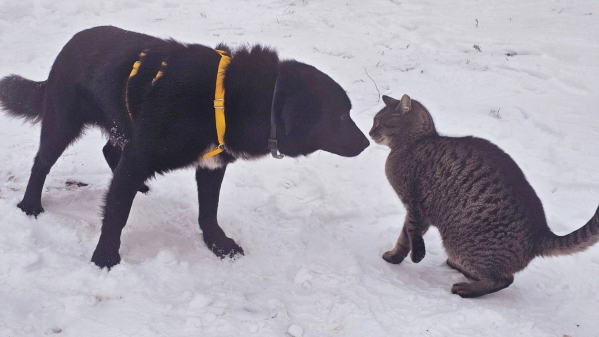 Er lebt nun im Tierheim mit anderen Hunden und Katzen friedlich zusammen.