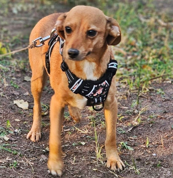 Libella, Hündin, Mischling, geboren ca. 03. Juni 2023 (von einem ungarischen Tierarzt geschätzt), reist kastriert, Schulterhöhe: ca. 36 cm und ca. z.Z. 6,5-7,5 Kilo (Hals: 28-32 cm, Brust: 49-54 cm), Vermittlung zu Katzen: ja, wenn diese das Leben mit Hunden kennen. Auf Wunsch wird auch extra nochmals getestet, nur eine Garantie gibt es nicht.