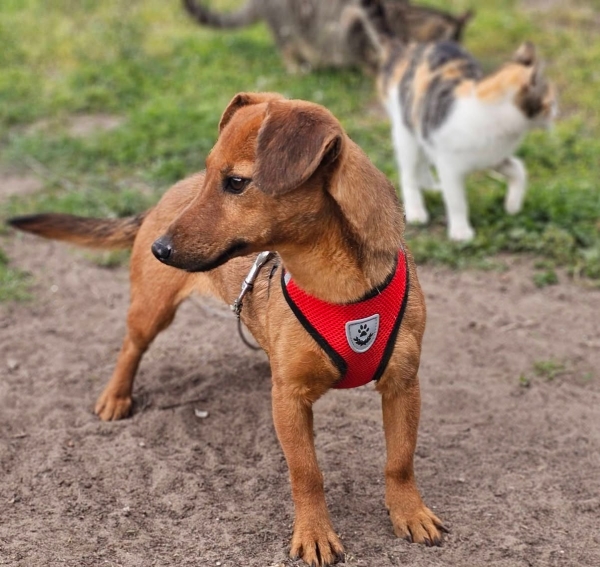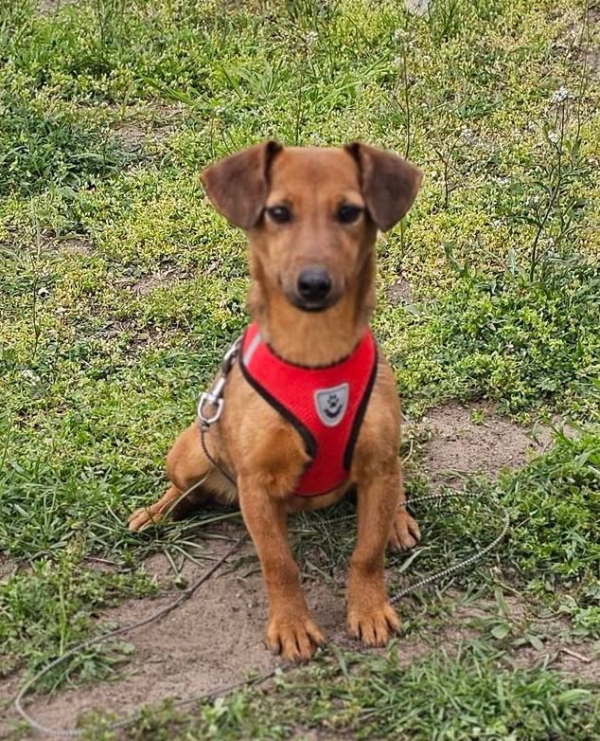 Stupsi, Hündin, Rehpinscher Mischling, geboren ca. 17. Januar 2022 (von einem ungarischen Tierarzt geschätzt), reist kastriert, Schulterhöhe: ca. 28 cm und ca. z.Z. 5-6 Kilo (Hals: 23-27 cm, Brust: 43-46 cm), Vermittlung zu Katzen: ja, wenn diese das Leben mit Hunden kennen. Auf Wunsch wird auch extra nochmals getestet, nur eine Garantie gibt es nicht.