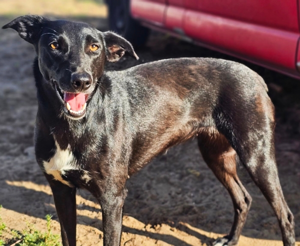 Alizee, Hündin, Windhund Mischling, geboren ca. 05. Oktober 2023 (von einem ungarischen Tierarzt geschätzt), reist kastriert, Schulterhöhe: ca. 55 cm und ca. z.Z. 14-16 Kilo (Hals: 39-43 cm, Brust: 74-78 cm), Vermittlung zu Katzen: ja, wenn diese das Leben mit Hunden kennen. Auf Wunsch wird auch extra nochmals getestet, nur eine Garantie gibt es nicht.