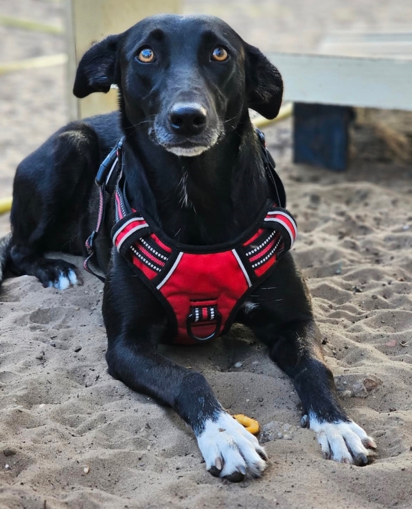 Mit allen Hunden ist sie umgänglich und sucht nach quirligen Hundekumpels zum Spielen, rennen und Spaß haben.
