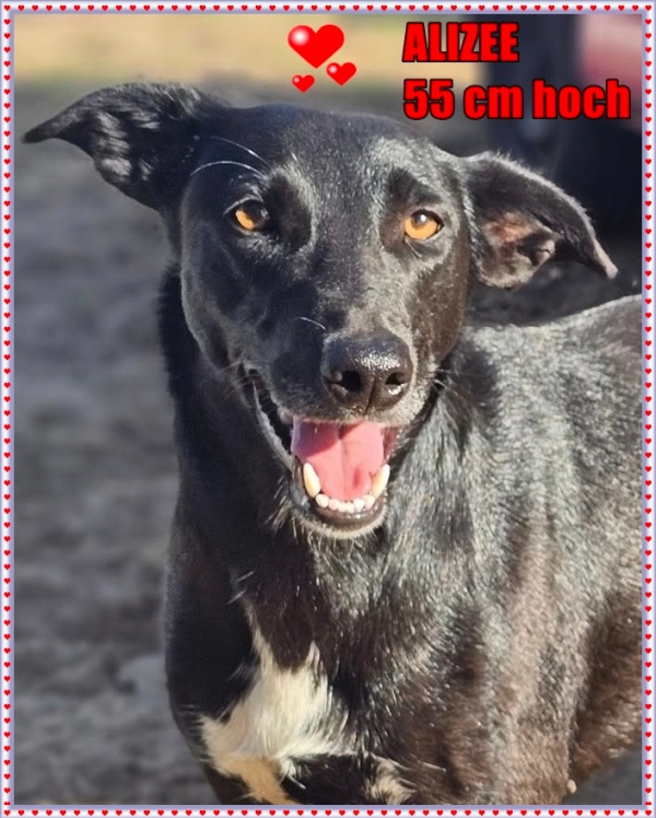 Alizee, Hündin, Windhund Mischling, geboren ca. 05. Oktober 2023 (von einem ungarischen Tierarzt geschätzt), reist kastriert, Schulterhöhe: ca. 55 cm und ca. z.Z. 14-16 Kilo (Hals: 39-43 cm, Brust: 74-78 cm), Vermittlung zu Katzen: ja, wenn diese das Leben mit Hunden kennen. Auf Wunsch wird auch extra nochmals getestet, nur eine Garantie gibt es nicht.