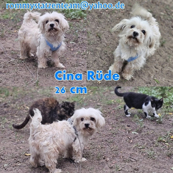 Cina, Rüde, Malteser Mischling, geboren ca. 01. August 2017 (von einem ungarischen Tierarzt geschätzt), reist kastriert, Schulterhöhe: ca. 26 cm und ca. z.Z. 3 Kilo (Hals: 23-27 cm, Brust: 36-39 cm), Vermittlung zu Katzen: ja, wenn diese das Leben mit Hunden kennen. Auf Wunsch wird auch extra nochmals getestet, nur eine Garantie gibt es nicht.