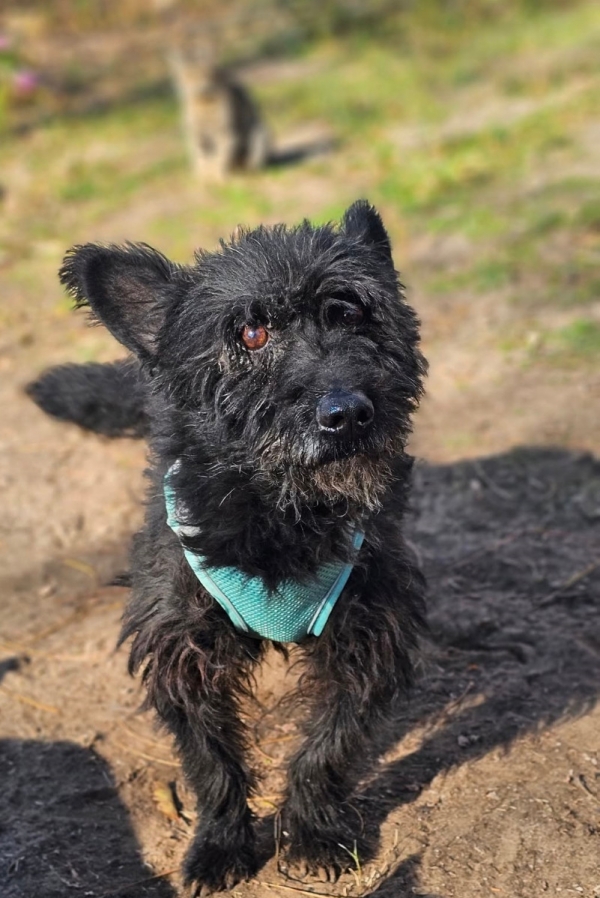 Raven, Rüde, Mischling, geboren ca. 05. April 2016 (von einem ungarischen Tierarzt geschätzt), reist kastriert, Schulterhöhe: ca. 36 cm und ca. z.Z. 5,8-6,8 Kilo (Hals: 30-33 cm, Brust: 48-52 cm), Vermittlung zu Katzen: ja, wenn diese das Leben mit Hunden kennen. Auf Wunsch wird auch extra nochmals getestet, nur eine Garantie gibt es nicht.