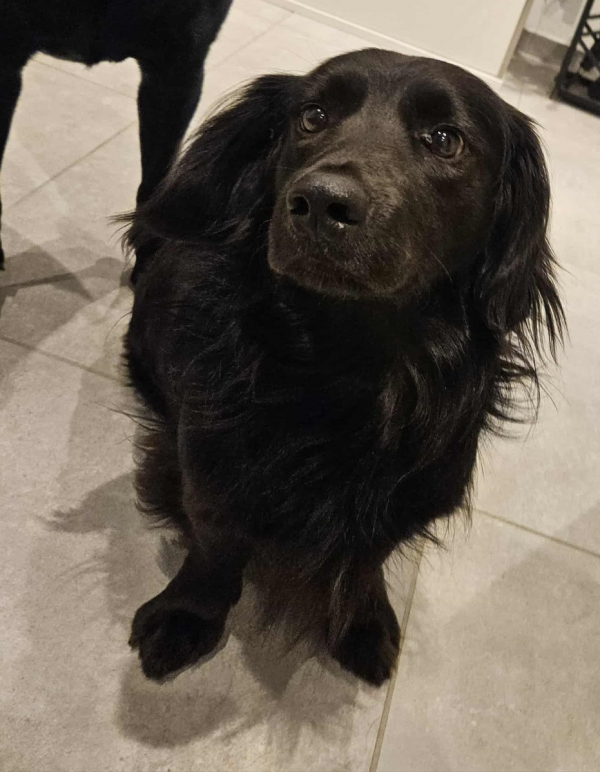 Ein Traumzuhause sollte ohne viele Stufen sein, er ist lang im Rücken (Dackelmix ?).