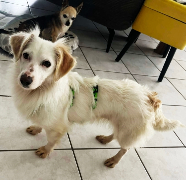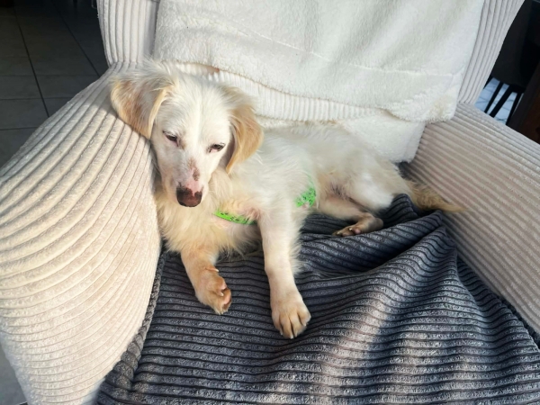 Neve, Hündin, Mischling, geboren ca. 01. Oktober 2023, kastriert, Schulterhöhe: ca. 33 cm und z.Z. 6,5 Kilo, Vermittlung zu Katzen: ja, wenn diese das Leben mit Hunden kennen.