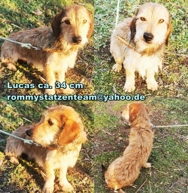 Lucas, Rüde, Dackel Mischling, geboren ca. 30. Juli 2021 (von einem ungarischen Tierarzt geschätzt), kastriert, Schulterhöhe: ca. 34 cm und z.Z. ca. 6-6,8 Kilo (Hals: 22-27 cm, Brust: 42-48 cm), Vermittlung zu Katzen: ja, wenn diese das Leben mit Hunden kennen. Auf Wunsch wird auch extra nochmals getestet, nur eine Garantie gibt es nicht.