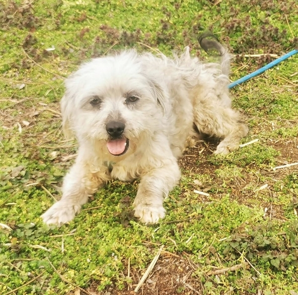 Leider ist das Fell der Kleinen sehr verfilzt, sie wurde schon etwas frei geschnitten, jedoch müsste Tinna wahrscheinlich einmal komplett geschoren werden, sobald sie etwas Vertrauen gefasst hat.