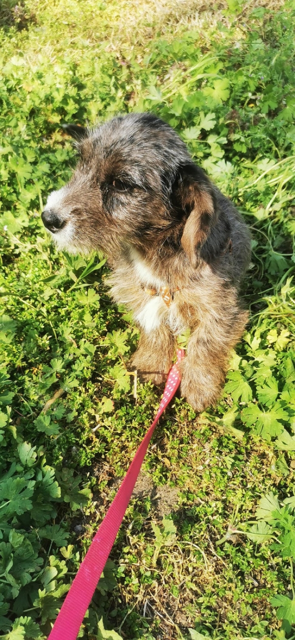 Aber sie beobachtet, ist neugierig und gut zu motivieren, ihre Schüchternheit wird sie in einem geduldigen und liebevollen Zuhause schnell ablegen.