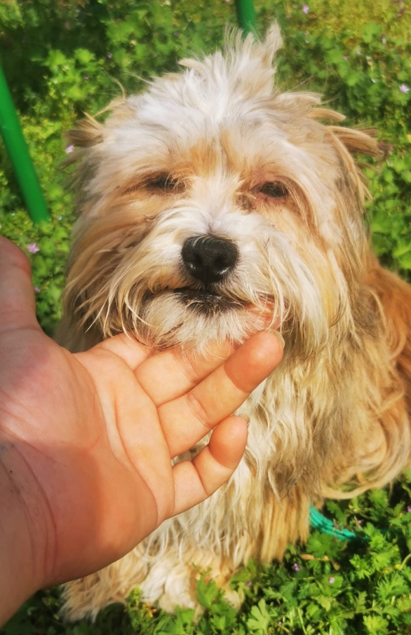 Yankee, Rüde, Shih Tzu Mischling, geboren ca. 20. Oktober 2022 (von einem ungarischen Tierarzt geschätzt), nicht kastriert, Schulterhöhe: ca. 28 cm und z.Z. ca. 28 Kilo (Hals: 20-24 cm, Brust: 34-38 cm), Vermittlung zu Katzen: ja, wenn diese das Leben mit Hunden kennen. Vor der Ausreise kann nochmals getestet werden, nur eine Garantie gibt es nicht.