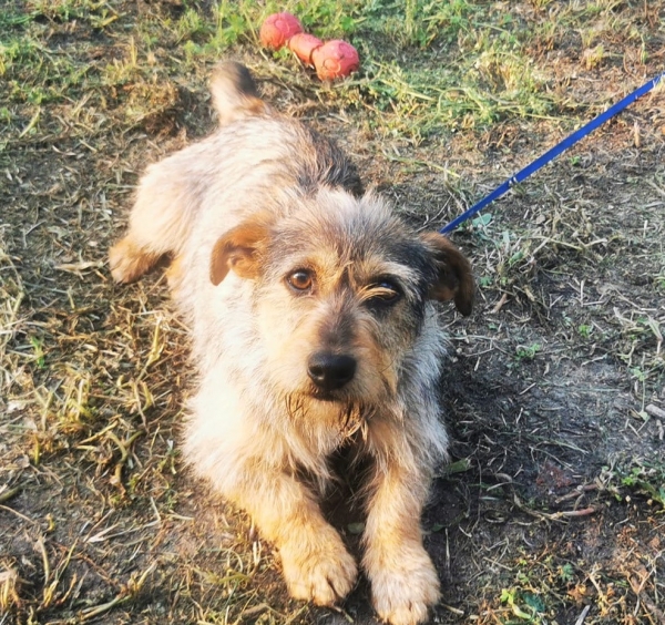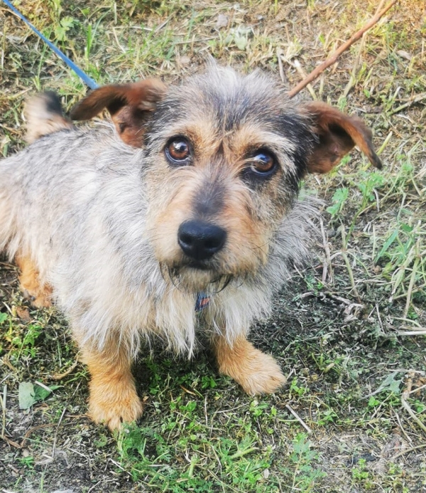 Kundi, Hündin, Mischling, geboren ca. 01. Januar 2022 (von einem ungarischen Tierarzt geschätzt), kastriert, Schulterhöhe: ca. 29 cm und z.Z. ca. 6-6,5 Kilo (Hals: 26-29 cm, Brust: 43-48 cm), Vermittlung zu Katzen: ja, wenn diese das Leben mit Hunden kennen. Vor der Ausreise kann nochmals getestet werden, nur eine Garantie gibt es nicht. Kundi hat eine kurze Rute.