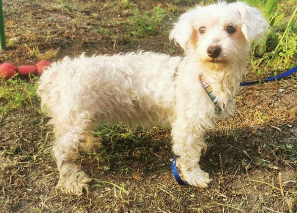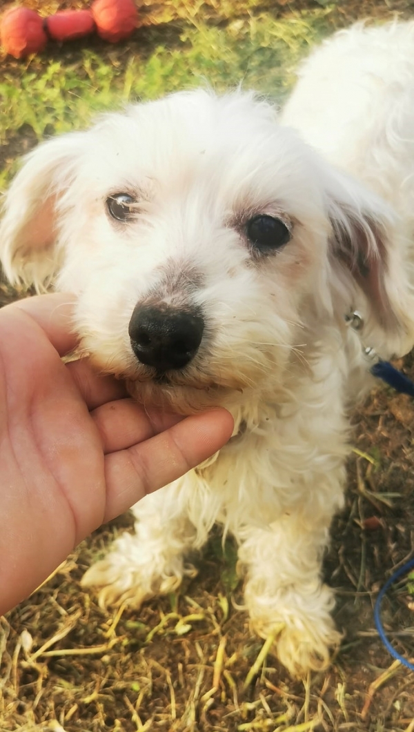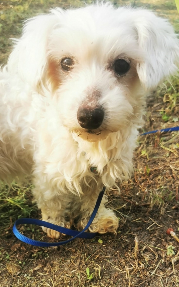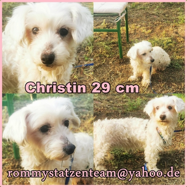 Christin, Hündin, Malteser Mischling, geboren ca. 25. April 2019 (von einem ungarischen Tierarzt geschätzt), kastriert, Schulterhöhe: ca. 29 cm und z.Z. ca. 4-5 Kilo (Hals: 20-24 cm, Brust: 36-40 cm), Vermittlung zu Katzen: ja, wenn diese das Leben mit Hunden kennen. Vor der Ausreise kann nochmals getestet werden, nur eine Garantie gibt es nicht. Christin ist zu dünn und muss noch zunehmen !