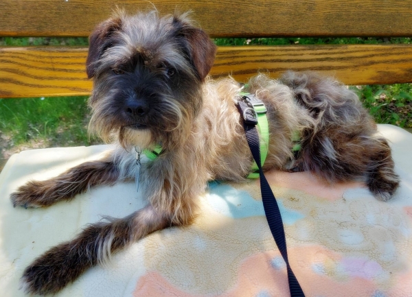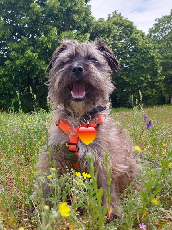 Raspa, Hündin, Mischling, geboren ca. 11. April 2022, kastriert, Schulterhöhe: 35 cm und 7.8 kg, Vermittlung zu Katzen: Vermittlung zu Katzen: ja, wenn diese das Leben mit Hunden kennen.