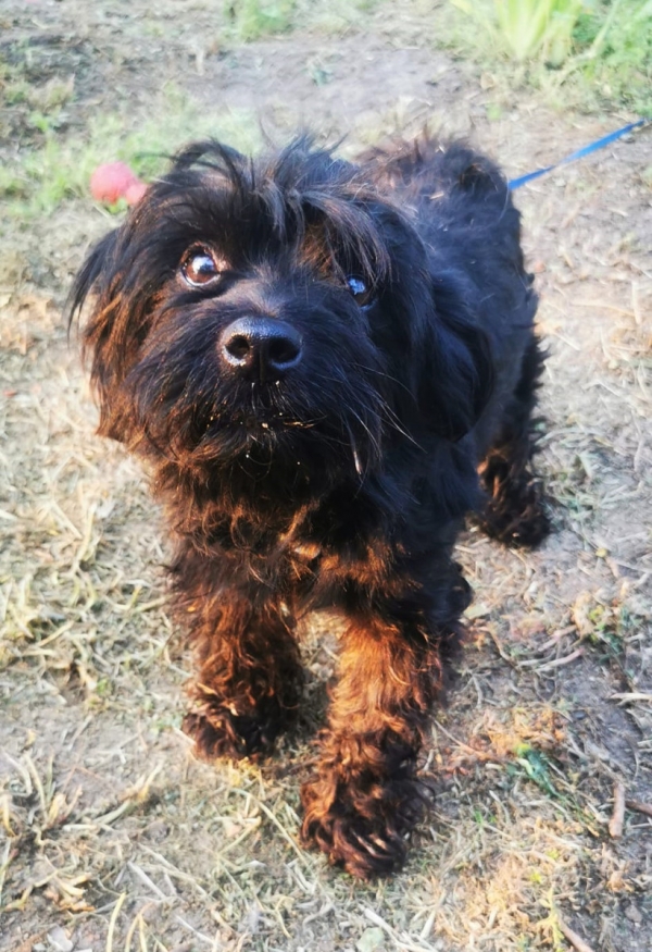 Geppo, Rüde, Mischling, geboren ca. 15. März 2019 (von einem ungarischen Tierarzt geschätzt), kastriert, Schulterhöhe: ca. 33 cm und z.Z. ca. 6,5-7,5 Kilo (Hals: 28-32 cm, Brust: 46-52 cm), Vermittlung zu Katzen: ja, wenn diese das Leben mit Hunden kennen. Vor der Ausreise kann nochmals getestet werden, nur eine Garantie gibt es nicht.