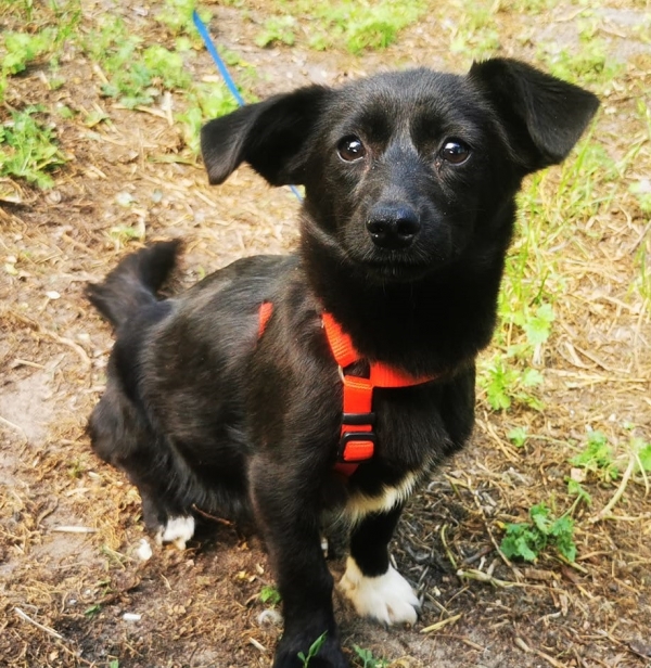 Mädi, Hündin, Mischling, geboren ca. 26. Januar 2023 (von einem ungarischen Tierarzt geschätzt), nicht kastriert, Schulterhöhe: ca. 29 cm und z.Z. ca. 4-5 Kilo (Hals: 21-24 cm, Brust: 35-39 cm), Vermittlung zu Katzen: ja, wenn diese das Leben mit Hunden kennen. Vor der Ausreise kann nochmals getestet werden, nur eine Garantie gibt es nicht. Mädi wächst langsam, Tierpfleger und Tierarzt schätzen kleiner bleibend.
