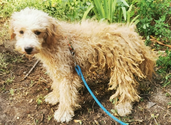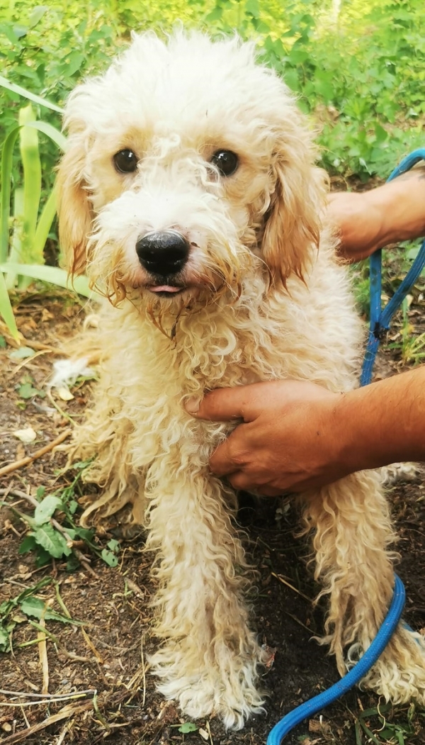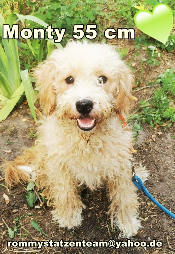 Monty, Rüde, Pudel Mischling, geboren ca. 17. März 2022 (von einem ungarischen Tierarzt geschätzt), kastriert, Schulterhöhe: ca. 55 cm und z.Z. ca. 14-16 Kilo (Hals: 33-37 cm, Brust: 54-60 cm), Vermittlung zu Katzen: ja, wenn diese das Leben mit Hunden kennen. Auf Wunsch wird auch extra nochmals getestet, nur eine Garantie gibt es nicht. Monty sollte noch zunehmen !