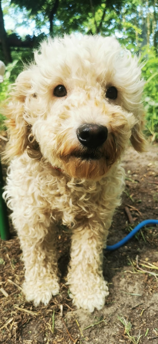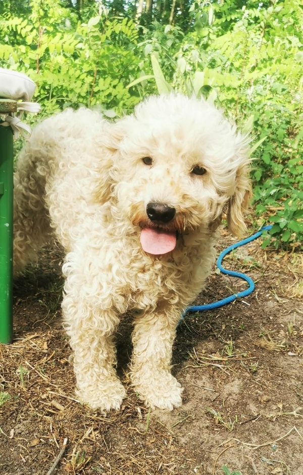 Flake, Hündin, Pudel Mischling, geboren ca. 07. Februar 2019 (von einem ungarischen Tierarzt geschätzt), kastriert, Schulterhöhe: ca. 41 cm und z.Z. ca. 9-11 Kilo (Hals: 32-36 cm, Brust: 53-58 cm), Vermittlung zu Katzen: ja, wenn diese das Leben mit Hunden kennen. Auf Wunsch wird auch extra nochmals getestet, nur eine Garantie gibt es nicht.