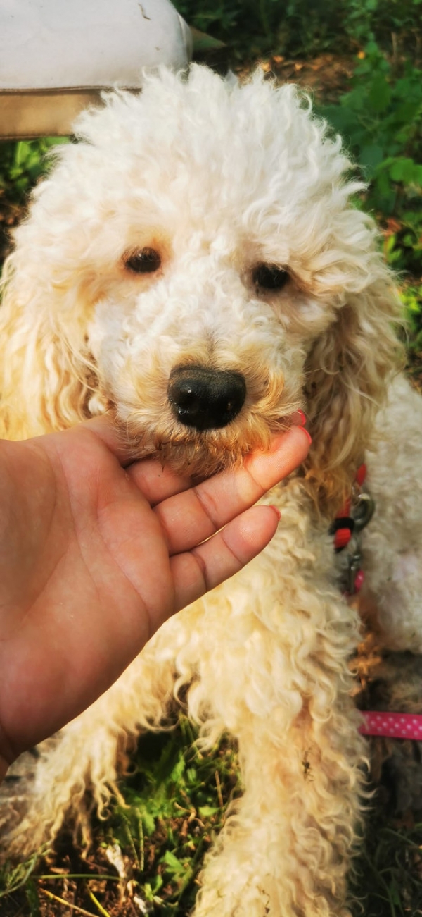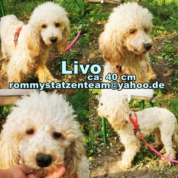Livo, Rüde, Pudel Mischling, geboren ca. 20. April 2021 (von einem ungarischen Tierarzt geschätzt), kastriert, Schulterhöhe: ca. 40 cm und z.Z. ca. 7-8 Kilo (Hals: 25-29 cm, Brust: 44-50 cm), Vermittlung zu Katzen: ja, wenn diese das Leben mit Hunden kennen. Auf Wunsch wird auch extra nochmals getestet, nur eine Garantie gibt es nicht.