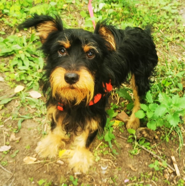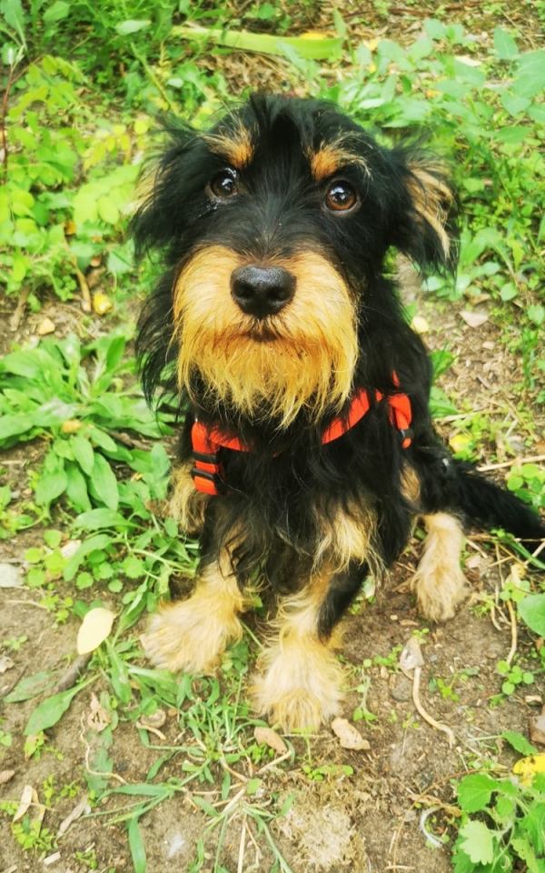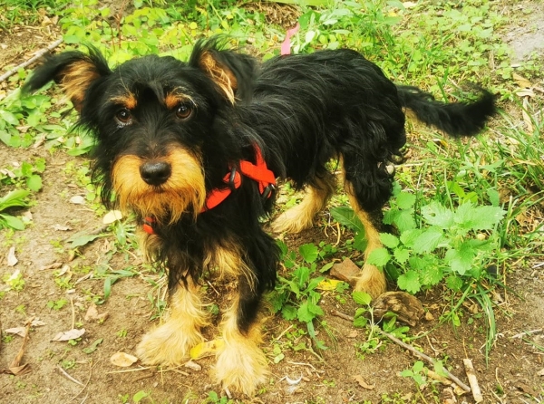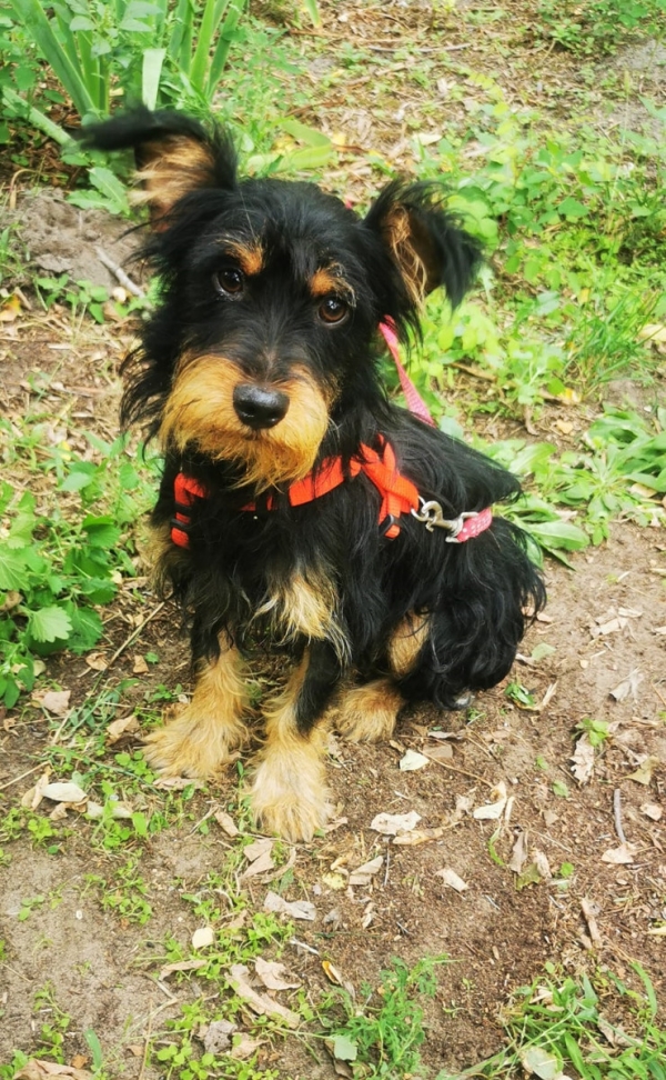 Bisher zeigt er noch kein Terrier typisches Verhalten (was aber noch kommen kann), noch ist er eher zögerlich und sensibel und seine unschöne Vergangenheit hat ihn gelernt, achtsam und vorsichtig zu sein.