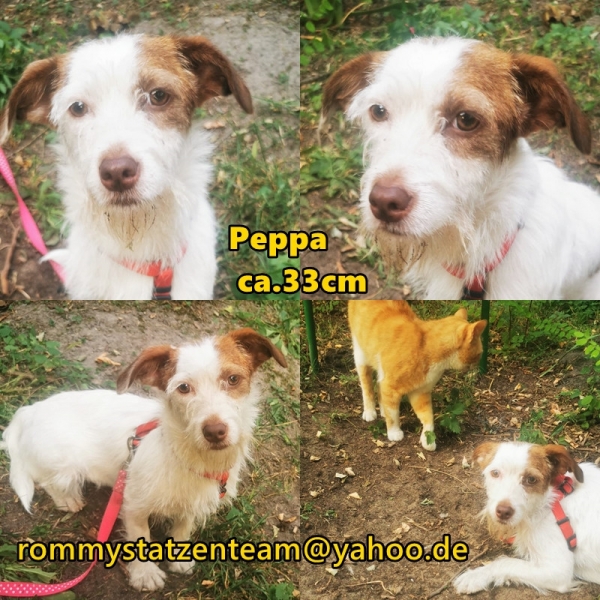 Peppa, Hündin, Parson Jack Russell Mischling, geboren ca. 09. März 2022 (von einem ungarischen Tierarzt geschätzt), kastriert, Schulterhöhe: ca. 33 cm und z.Z. ca. 6,5-7,5 Kilo (Hals: 23-27 cm, Brust: 53-57 cm), Vermittlung zu Katzen: ja, wenn diese das Leben mit Hunden kennen. Auf Wunsch wird auch extra nochmals getestet, nur eine Garantie gibt es nicht.