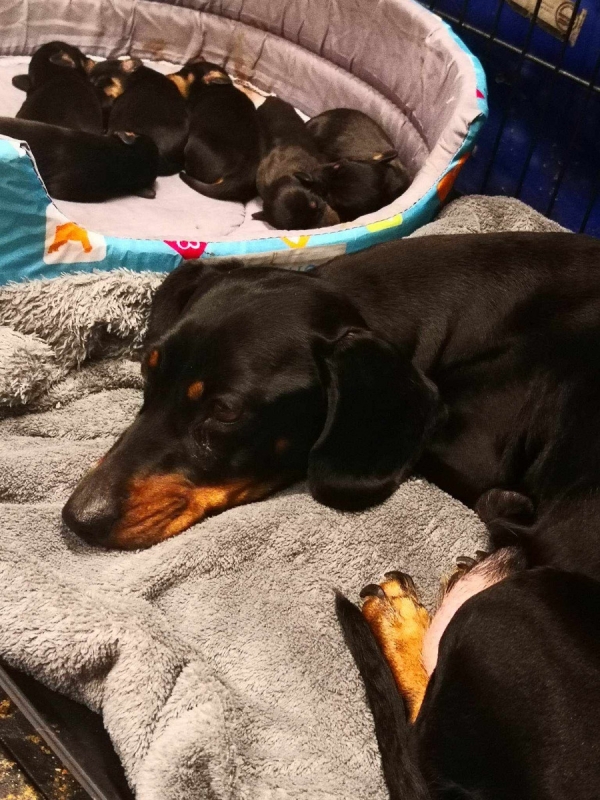 Toffee wurde in Ungarn abgegeben wegen Umzug und hat 14 Tage später 6 tolle Welpen geboren.