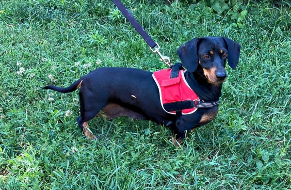 Durch die typischen kurzen Dackelbeine und den sehr langen Rücken, sollte sie auf keinen Fall viele Treppenstufen laufen müssen.