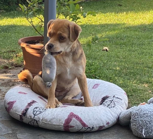 Nach Eingewöhnung kann sie auch mal 3–4 Stunden alleine bleiben, mit ihrem Kuscheltier, anschließend möchte sie aber gemeinsame Zeit mit ihrem Menschen verbringen, lange spazieren gehen und anschließend den Abend zusammen auf der Couch kuscheln.