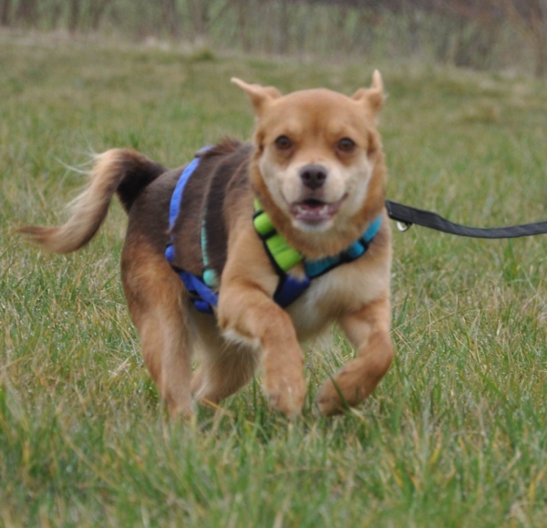 Polly hat eine gute Sprungkraft, die sie auch nutzt, nicht um abzuhauen, sondern zum Schnüffeln.