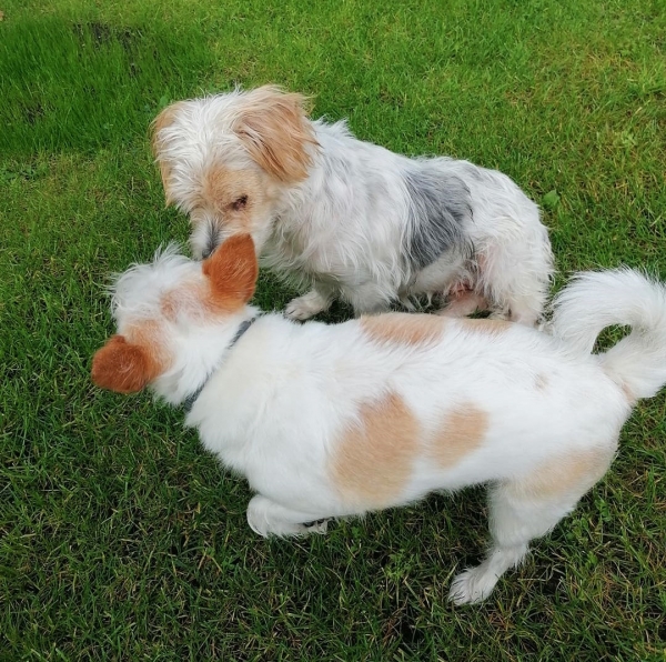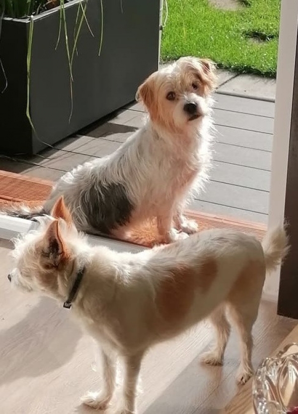 Famia kommt mit den anderen Hunden auf der Pflegestelle gut aus und kann mit ihnen auch schon 2-3 Stunden alleine bleiben. Natürlich muss das in neuer Umgebung kleinschrittig weiter eingeübt werden.