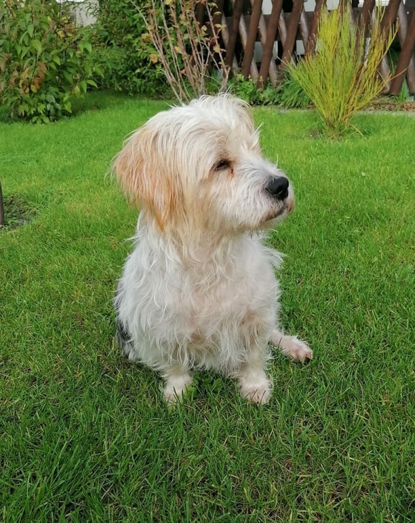 Famia, Hündin, Havaneser Mischling, geboren ca. 01. Juni 2017, kastriert, Schulterhöhe: ca. 30 cm und ca. 5-6 Kilo, das linke Auge musste entfernt (Glaukom), das rechte Auge ist vollkommen in Ordnung.