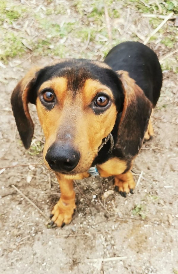 Ludwig, der hübsche Dackelmann, wurde aus einer der schrecklichen Tötungen in Ungarn gerettet.