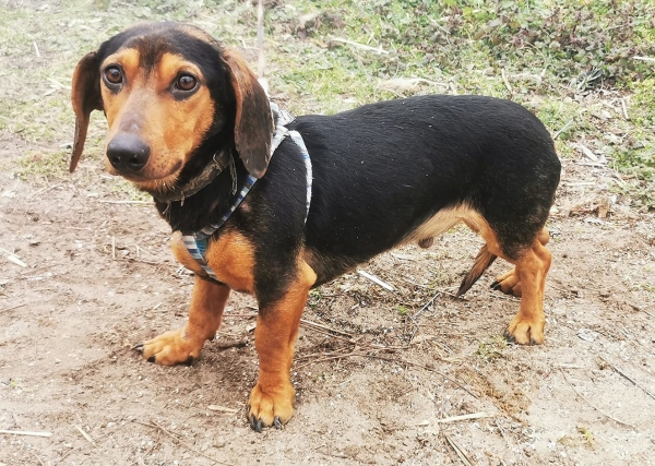 Ludwig, Rüde, Dackel Mischling, geboren ca. 08. September 2021 (von einem ungarischen Tierarzt geschätzt), kastriert, Schulterhöhe: ca. 30 cm und z.Z. ca. 5,5-6,3 Kilo (Hals: 33-36 cm, Brust: 47-55 cm), Vermittlung zu Katzen: ja, wenn diese das Leben mit Hunden kennen. Auf Wunsch wird auch extra nochmals getestet, nur eine Garantie gibt es nicht.