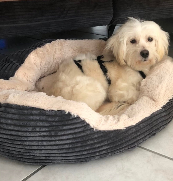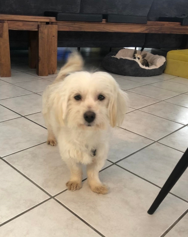 Malia, Hündin, Malteser Mischling, geboren ca. 04. Mai 2019, kastriert, Schulterhöhe: ca. 30 cm, Vermittlung zu Katzen: ja, wenn diese das Leben mit Hunden kennen.