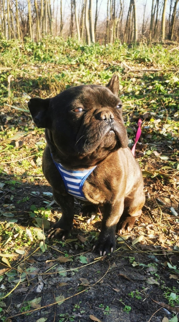 Gilbert, Rüde, Französische Bulldogge Mischling, geboren ca. 12. August 2022 (von einem ungarischen Tierarzt geschätzt), kastriert, Schulterhöhe: ca. 33 cm und ca. z.Z. 7,5-8 Kilo (Hals: 35-39 cm, Brust: 54-58 cm), Vermittlung zu Katzen: ja, wenn diese das Leben mit Hunden kennen. Auf Wunsch wird auch extra nochmals getestet, nur eine Garantie gibt es nicht.