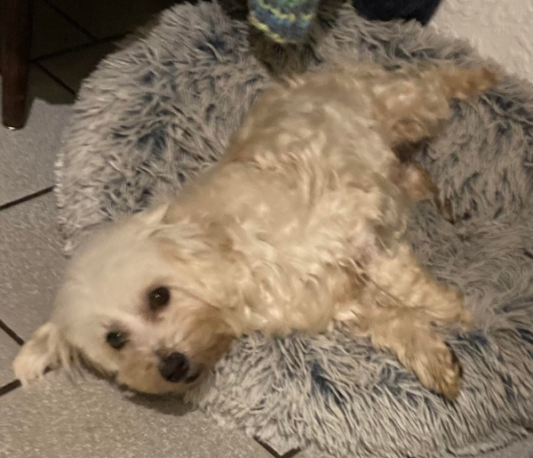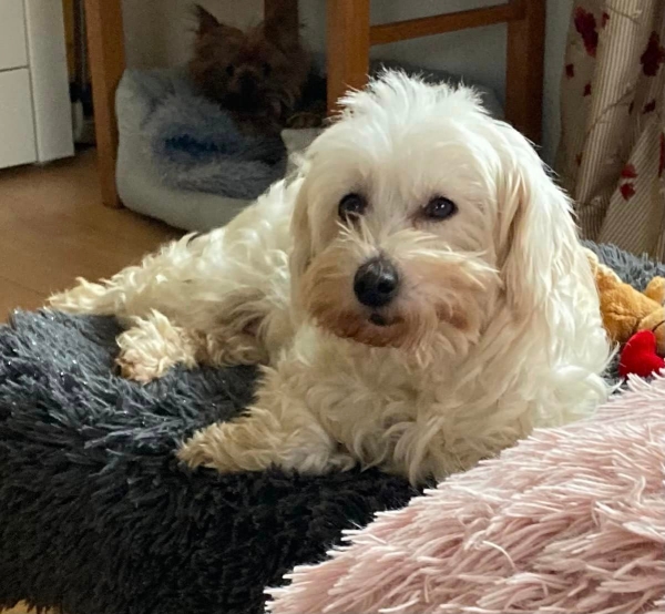 Moana, Hündin, Malteser Mischling, geboren ca. 10. April 2017, kastriert, Schulterhöhe: ca. 30 cm, Vermittlung zu Katzen: ja, wenn diese das Leben mit Hunden kennen.