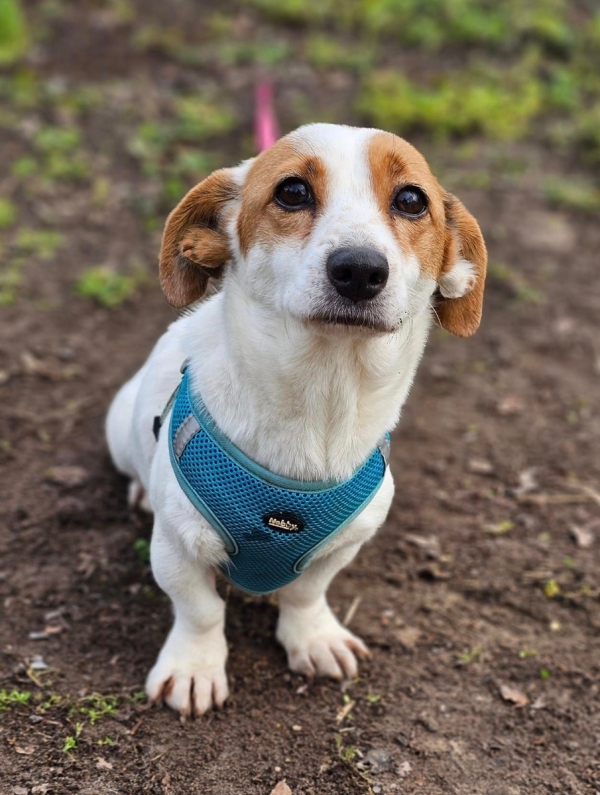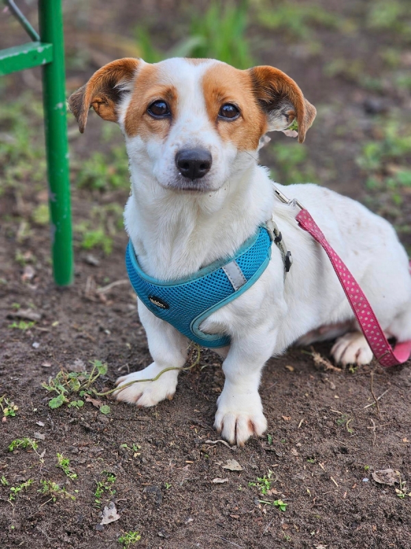 Halma, Hündin, Jack Russell Terrier Mischling, geboren ca. 21. Mai 2021 (von einem ungarischen Tierarzt geschätzt), kastriert, Schulterhöhe: ca. 26 cm und z.Z. ca. 4-4,5 Kilo (Hals: 25-28 cm, Brust: 44-48 cm), Vermittlung zu Katzen: ja, wenn diese das Leben mit Hunden kennen. Auf Wunsch wird auch extra nochmals getestet, nur eine Garantie gibt es nicht.