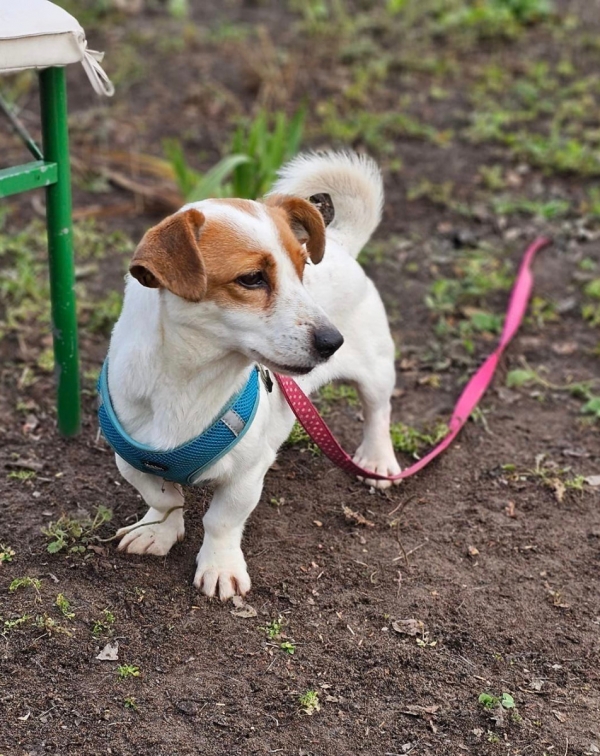 Halma, die kleine Jackrussell Mix Hündin, hat sich schnell eingelebt und ist froh für jede Ansprache und Zuwendung.