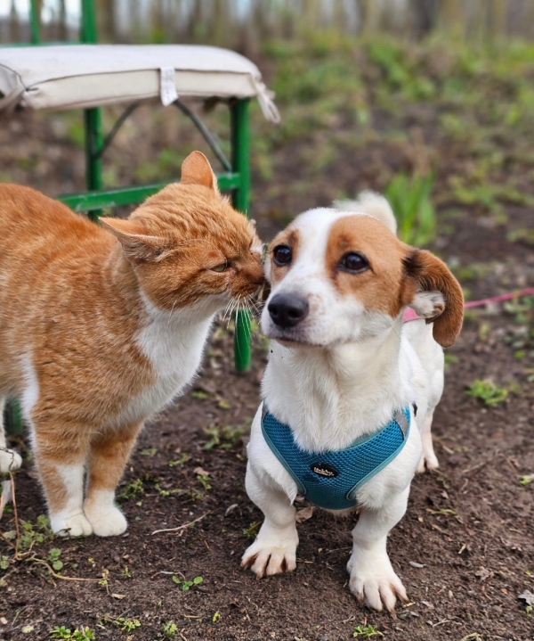Mit dem Rudel im Tierheims kommt sie gut zurecht und auch die Hofkatzen findet sie ganz prima.