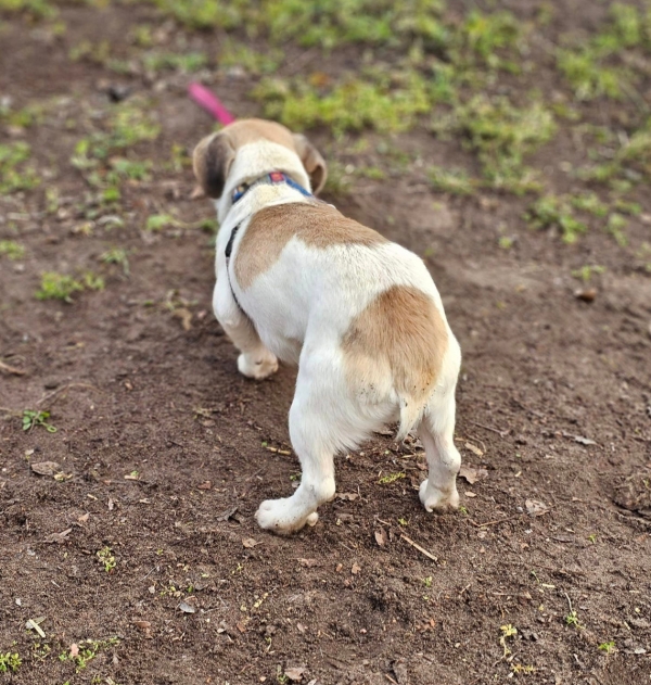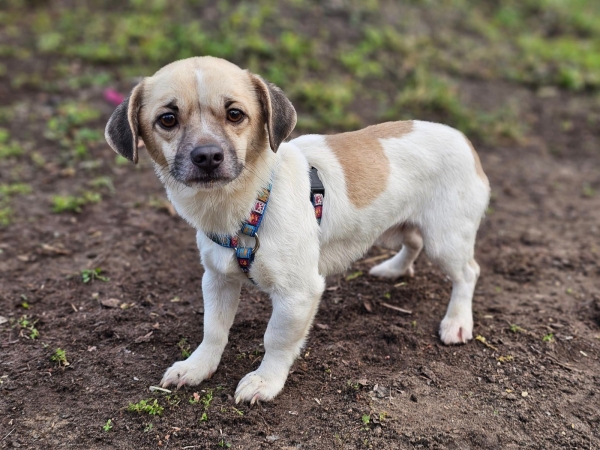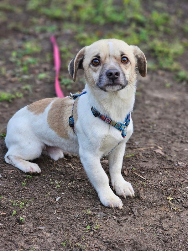 Ulik, Rüde, Mischling, geboren ca. 07. Oktober 2022 (von einem ungarischen Tierarzt geschätzt), kastriert, Schulterhöhe: ca. 27 cm und z.Z. ca. 4-4,5 Kilo (Hals: 24-27 cm, Brust: 40-44 cm), Vermittlung zu Katzen: ja, wenn diese das Leben mit Hunden kennen. Auf Wunsch wird auch extra nochmals getestet, nur eine Garantie gibt es nicht. Ulik hat eine kurze Rute !