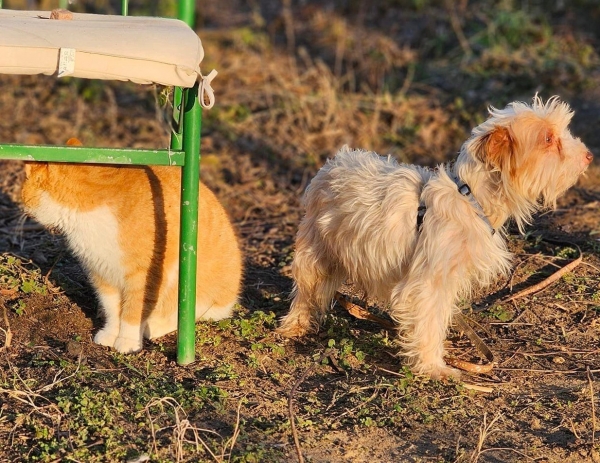 Mit den Hunden und Katzen hat er sich arrangiert und hat sich sehr gut angepasst.