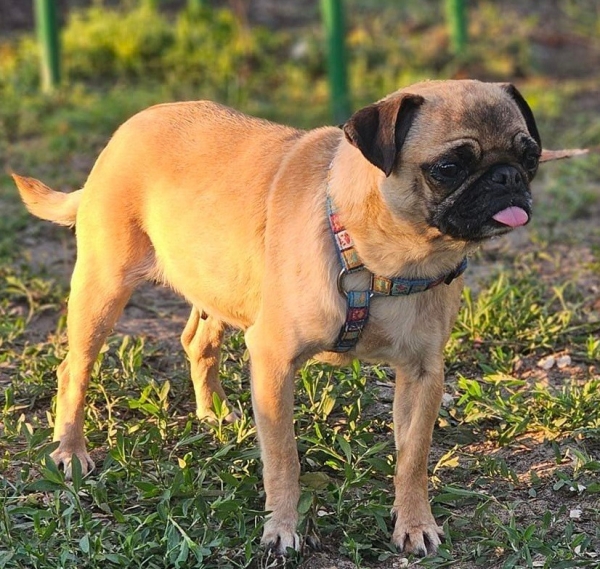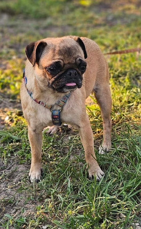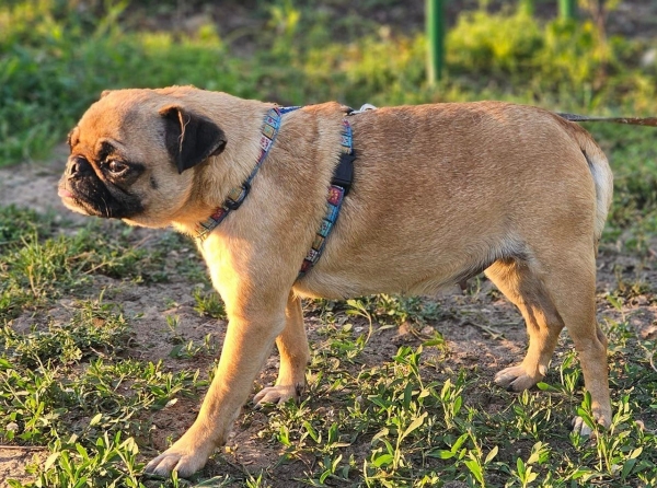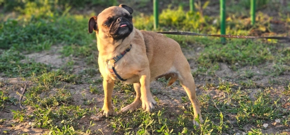 Katie, Hündin, Mops Mischling, geboren ca. 17. April 2023 (von einem ungarischen Tierarzt geschätzt), kastriert, Schulterhöhe: ca. 30 cm und z.Z. ca. 4,5-5,5 Kilo (Hals: 27-30 cm, Brust: 42-47 cm), Vermittlung zu Katzen: ja, wenn diese das Leben mit Hunden kennen. Auf Wunsch wird auch extra nochmals getestet, nur eine Garantie gibt es nicht.