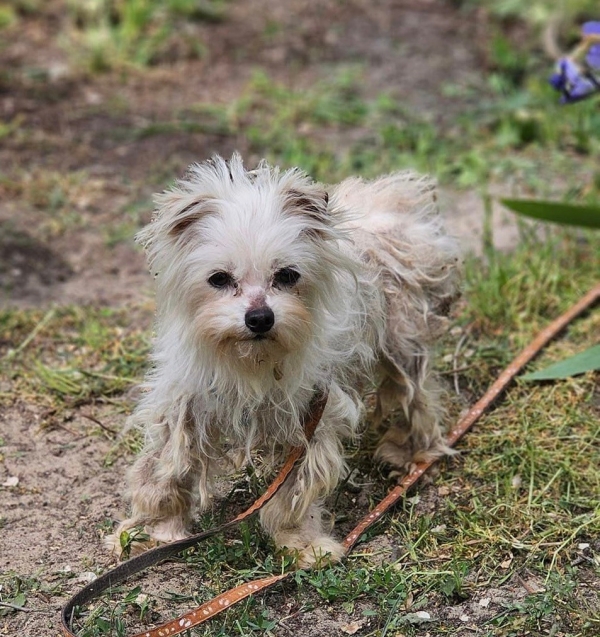 Die sehr kleine, zierliche Pippa wurde mit anderen Hunden zusammen aus einer völlig verwahrlosten Messiwohnung gerettet.