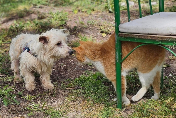 Mit den Hofkatzen und den anderen Hunden im Rudel kommt er gut zurecht und legt auch mal eine Flitzerunde ein.
